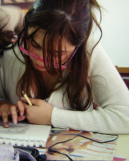 Ora bem... Arte não é algo que se ensine. Eu costumo muitas vezes dizer que preferia não ter seguido Artes Visuais no secundário, porque não aprendi a desenhar propriamente melhor. Aprendi a usar um ou outro material que possivelmente em casa não ia mostrar interesse (por exemplo pastéis de óleo) ou a desenhar coisas que nunca ia tentar como copos ou galos de Barcelos (ainda me custa vê-los á frente), mas tudo o que sei desenhar foi porque pus tempo, dedicação e muito treino em cada um dos meus desenhos. A melhor dica que posso dar sempre é pegar num lápis e treinar muito.